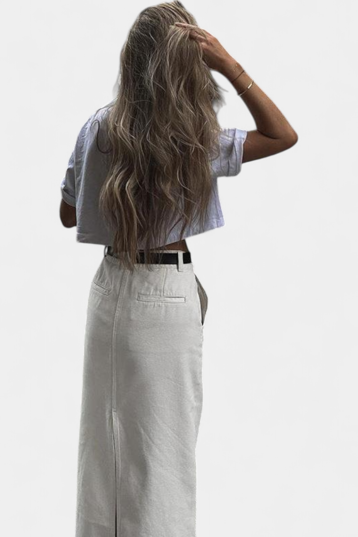 Inspirada en el encanto despreocupado de las calles parisinas, esta falda combina un corte slim favorecedor con una abertura frontal que aporta sofisticación y libertad de movimiento. Su confección en algodón con un toque de elastano garantiza comodidad sin perder estructura, ideal para looks urbanos con aire elegante.