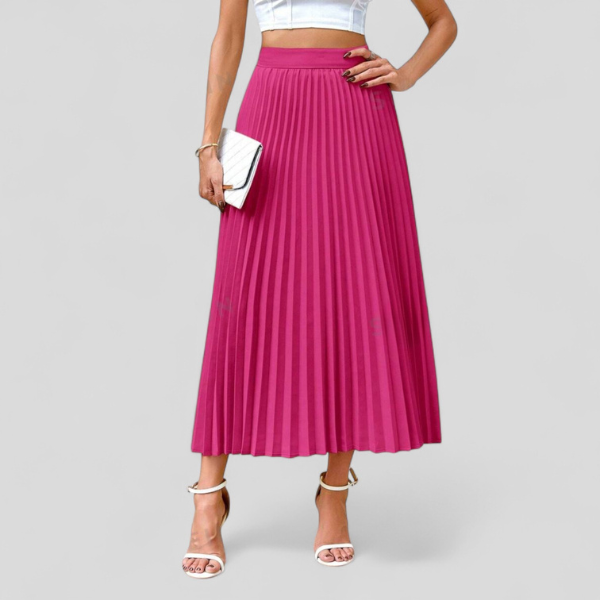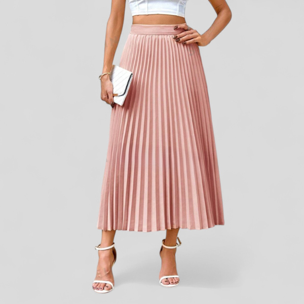 Elegancia atemporal con un aire femenino ligero. Esta falda midi se distingue por su línea clara y finos pliegues, que aportan movimiento y sofisticación en cada paso. Diseñada para resaltar la figura con su cintura alta, es la prenda perfecta para combinar con blusas o camisetas sencillas y crear un look urbano y estiloso sin esfuerzo.